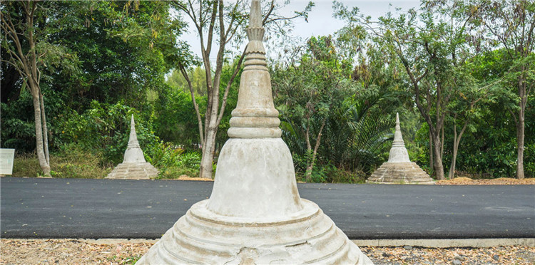 眼前这座三塔山口的原址啊,就在泰国和缅甸的边界—北碧府,是大城王朝时期建造的,当时缅甸经常从这里进攻大城,然后纳梨萱大帝又把他们从这里赶出去,之后纳梨萱大帝就宣布正式的脱离了缅甸统治,建立一个独立的王国。