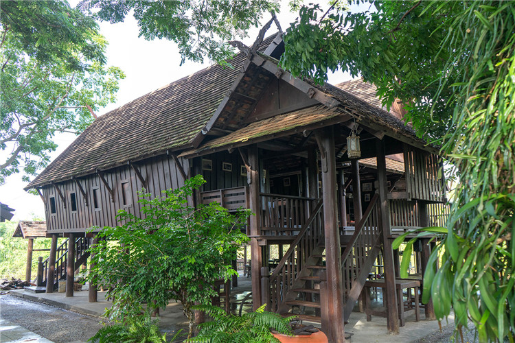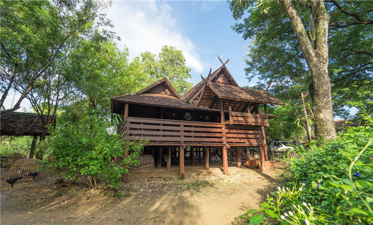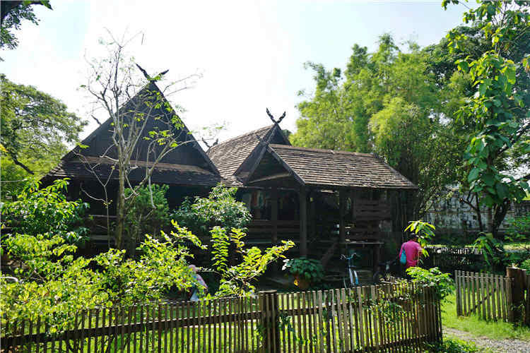 在您眼前的北部泰式民居群呢,展示了泰国北部特有的住宅模式,泰国北部的房子和中部的房子区别在于屋顶的十字架山墙,北部房子的山墙上有精心雕刻的复杂图案,中部的房子则是普通三角形的山墙。在北方,屋顶通常有小瓷砖,窗户也很小,这样方便冬天保暖。房子的主要部分由木材建造,北部房屋通常都共用甲板和水厅,水厅是房屋的必要部分。泰国北部房屋的另一个独特之处呢,是在门上方会放置一块木雕,这块木雕通常用传统的设计雕刻而成,用来镇宅辟邪。